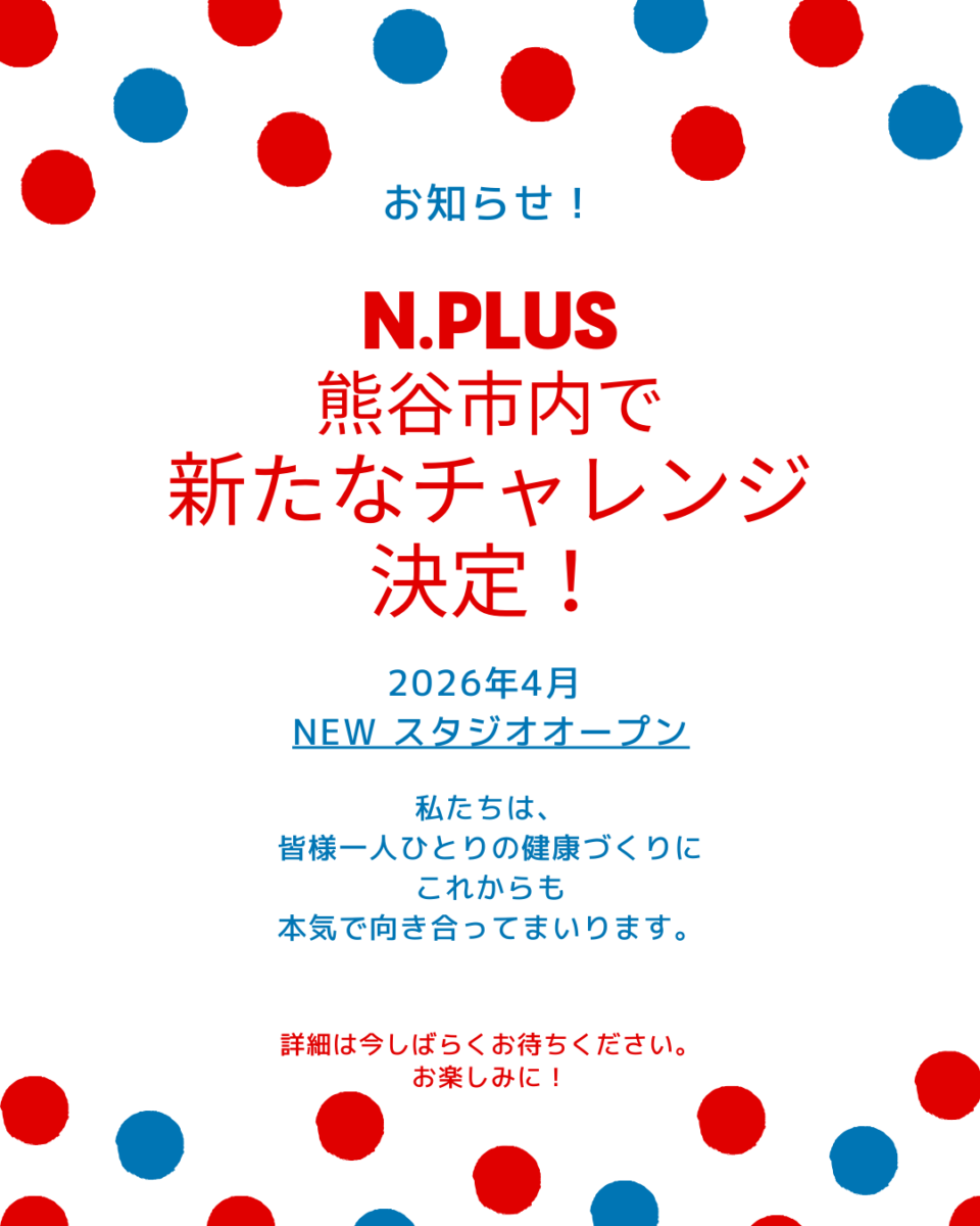 N.PLUS(エヌプラス)熊谷銀座店は、パーソナルトレーニングとマシンピラティスを組み合わせたオーダーメイドプログラムで、あなたの体のお悩みに寄り添います。
